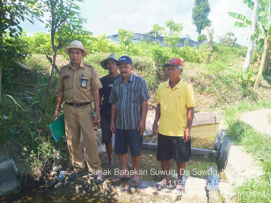 Bersama Kasi Lahan dan Irigasi Bidang Prasarana dan Sarana Pertanian Dinas Pertanian Kabupaten Buleleng, Bapak Ida Putu Sandiasa,SP dan didampingi Koordinator Kecamatan Sawan, serta pendamping pengukuran dari Kelian Subak dan Ketua UPKK. Melaksanakan pengukuran realisasi RJIT Di Subak Kloncing Desa Kerobokan, Subak Dangin Umah Desa Sinabun, Subak Kubulinggah Desa Suwug, Subak Babakan Suwug Desa Suwug, Subak Manuksesa Desa Bebetin, dan Subak Surelepang Desa Sangsit Kecamatan Sawan.