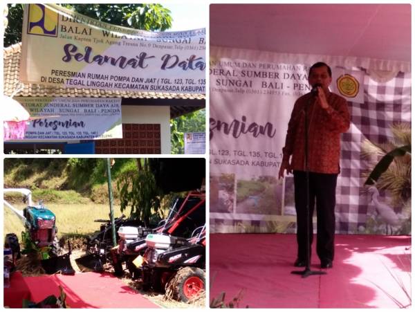 Kunjungan kerja anggota AKN IV BPK dalam rangka peresmian sumur bor dan penyerahan alsintan di Desa Tegallinggah Kecamatan Sukasada yang dihadiri Bapak Wakil Bupati, Dirjen Prasarana dan Sarana Pertanian Kementan, anggota komisi DPR RI , Badan Metereorologi dan Geofisika pada hari kamis tanggal 29 Maret 2018.