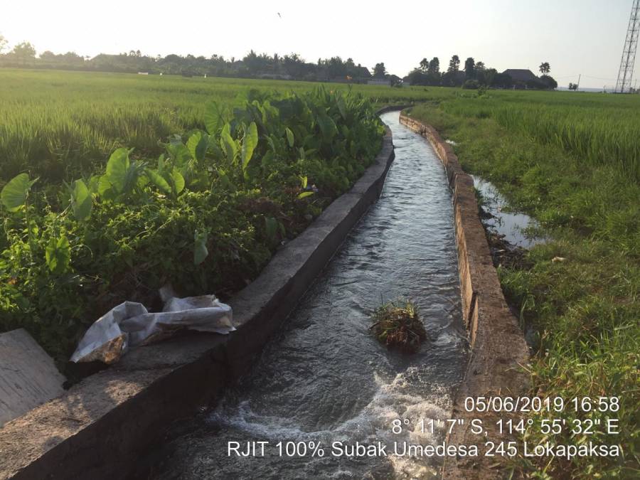 Seperti diketahui, RJIT merupakan kegiatan perbaikan serta penyempurnaan jaringan irigasi di tingkat tersier yang bertujuan untuk mengoptimalkan aliran air irigasi lahan pesawahan. Kondisi jaringan irigasi yang optimal akan berdampak pada lancarnya para petani dalam menjalankan kegiatan usaha taninya, terutama terkait dengan pasokan air. Dengan adanya kegiatan RJIT ini diharapkan dapat memperlancar distribusi air ke lahan sawah, sehingga dapat dimanfaatkan dengan baik untuk menunjang kelangsungan budidaya tanaman padi di Subak Umedesa 245.