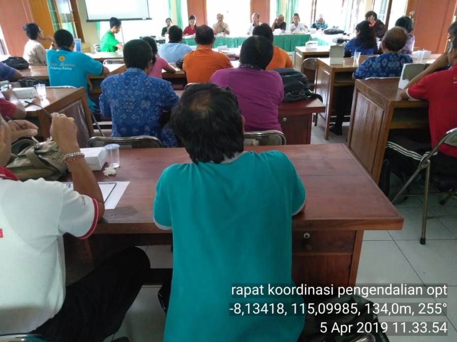Rapat ini diadakan pada hari jumat,5 april 2019 bertempat di ruang pertemuan Bpp Sukasada. Dipimpin oleh Kepala Dinas Pertanian Kabupaten Buleleng yang pada kesempatan tersebut diwakili oleh Kepala Bidang Tanaman Pangan Kabupaten Buleleng Bapak Gede Suadnyana,didampingi staf dan dihadiri pula oleh rombongan dari Dinas Tanaman Pangan Hortikultura dan Perkebunan Provinsi Bali.