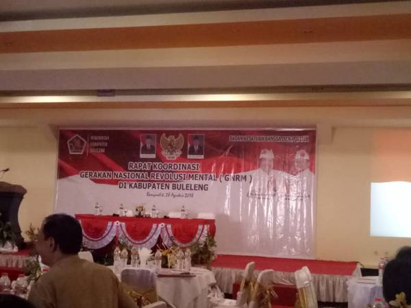 Rapat koordinasi pelaksanaan kegiatan Gerakan Nasional Revolusi Mental (GNRM) di Kab. Buleleng selasa, 28 Agustus 2018 di Hotel Banyualit yg di hadiri Oleh SKPD, TNI, POLRI , PT dan Ormas