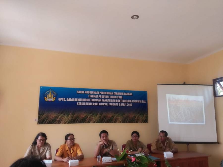 Selasa 9 April 2019, Rapat Koordinasi Perbenihan Tanaman Pangan diselenggarakan di UPTD. Balai Induk Tanaman Pangan dan Hotrikultura Provinsi Bali, Kebun Benih Padi Timpag Tabanan, dihadiri oleh :- Kepala Dinas Tanaman Pangan Hortikultura dan Perkebunan Provinsi Bali- Kepala Bidang Produksi Tanaman Pangan Hortikultura dan Perkebunan Provinsi Bali- BPTPH- BPTP- BPSB- Kasi atau Kabid yang menangani Perbenihan Kabupaten/Kota se-Bali.- Serta Perwakilan Penangkar Benih Kabupaten/Kota se-Bali.Tujuan pelaksanaan Rapat Koordinasi Perbenihan Tanaman Pangan yaitu untuk mengkoordinasikan hal – hal yang terkait dengan perbenihan khususnya tanaman pangan di tingkat provinsi, agar kegiatan – kegiatan yang sudah dan akan dilaksanakan sesuai dengan harapan dan membawa menfaat bagi kesejahteraan petani pada khususnya dan masyarakat umumnya.Rapat koordinasi dibuka langsung oleh bapak Kadis TPHBun, Bapak Ir. Ida Bagus Wisnu Ardhana, M.Si. Dalam sambutannya beliau menyampaikan bahwa benih menjadi hal yang paling utama dan paling penting untuk disiapkan, kebutuhan benih harus di data dengan benar dan permasalahan yang ada harus dicarikan solusi, seperti masalah permodalan agar diberikan bantuan dana penguatan modal kelompok dan kredit Program Bunga Rendah bagi Kelompok.Dalam rapat tersebut hadir beberapa narasumber diantaranya BPTPH, BPTP, BPSB, dan juga dari dinas TPHBun Prov. Bali. BPTPH menyampaikan tentang pengenalan dan pengendalian OPT utama tanaman pangan. Ir. Ketut Warini menyampaikan bahwa dasar kebijakan Pemerintah dalam Program Perlindungan Tanaman Pangan di Indonesia adalah Pengendalian Hama Terpadu (PHT) yang telah tercantum pada Inpres 3 th 1986, uu No. 12 th 1992 dan PP No.6 th 1995. Kebijakan PHT mulai berkembang sebagai koreksi terhadap usaha pengendalian hama secara konvensional dengan menggunakan bahan kimia sintetis secara tidak tepat dan berlebihan. PHT adalah suatu cara pendekatan atau cara berfikir dalam pengendalian hama yang didasarkan pada pertimbangan ekologi dan efisiensi ekonomi dalam rangka pengelolaan agroekosistem yang berwawasan lingkungan yang berkelanjutan. Beberapa OPT Tanaman Padi diantaranya :- Wereng batang coklat- Penggerek batang padi- Keong mas- Walang sangit- Hama tikus- Penyakit tungro- Blas- KresekOPT utama tanaman jagung :- Ulat grayak, Penggerek batang, Penggerek tongkol, penyakit bulai.OPT utama tanaman kedelai :- Ulat grayak, lalat kacang, penggerek polong, kripik polong, penyakit karat.Kabid Produksi TP pada Dinas TPHBun Provinsi Bali juga membawakan materi tentang peranan Benih Unggul Bermutu dalam UPSUS Peningkatan Produksi Padi, Jagung dan Kedelai tahun 2019 Provinsi Bali. Dalam pemaparannya Bapak Ir. I Wayan Sunarta, MP. Menyampaikan penggunaan benih unggul bermutu merupakan teknologi dasar dalam upaya peningkatan produksi pangan (PAJALE), karena akan menentukan efektifitas input teknologi berikutnya. Pemilihan varietas harus pas. Introduksi varietas baru perlu proses pembuktian di lapangan, penguatan perbenihan di daerah harus ditingkatkan.Kemudian dilanjutkan oleh BPTP, Ibu Ni Putu Suratmini menyampaikan materi tentang Pengembangan Teknologi Tanaman Pangan khususnya penggunaan varietas unggul baru. Bahwa pergiliran varietas denganvarietas unggul baru (VUB) disamping untuk meningkatkan produksi juga ditunjukan untuk memotong siklus hama/pengendalian hama penyakit. VUB dapat berkontribusi dalam upaya peningkatan produktivitas dengan syarat diintroduksikan dengan inovasi teknologi PTT baik PTT Padi, jagung maupun kedelai.Dan Bapak Wayan Susana dari BPSB selaku Narasumber menyampaikan bahwa benih dapat memberikan manfaat atau kontribusi yang optimal jika benih yang digunakan adalah benih varietas unggul yang dalam produksinya melalui proses sertifikasi yaitu benih dari varietas unggul yang dalam produksinya melalui proses sertifikasi dan memenuhi standard mutu benih yang berlaku serta diawasi dalam peredarannya. Tujuannya adalah untuk menjaga kemurnian genetik, fisik dan physiologisnya. Pengawasan perlu dilakukan benjenjang dari hulu – hilir. Administrasi sertifikasi benih tanaman pangan merupakan tugas dan tanggung jawab produser maupun penyelenggara sertifikasi benih.Selain dari beberapa narasumber yang hadir dalam acara rapat tersebut juga dihadiri oleh PT Rutan yang bergerak di bidang usaha penyediaan mesin – mesin Pertanian memperkenalkan trobosan baru “RICE SEED SORTER STS-600” yaitu mesin yang berfungsi mengoptimalkan benih padi dengan membersihkan benih gabah dari kotoran benda asing, benih hampa maupun debu dan juga memisahkan benih berdasarkan ukuran.Rapat koordinasi di tutup oleh penanggung jawab BBITPH Provinsi Bali dan Panitia Penyelenggara, Rapat tersebut dapat berjalan baik.