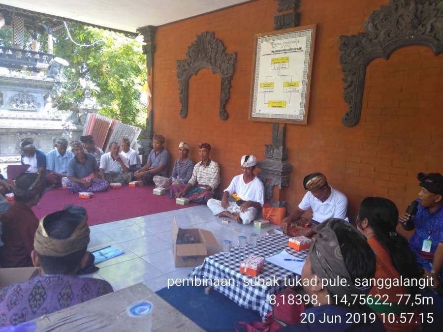 Kamis (20/6) dilaksanakan sosialisasi dari Kasi Pupuk Pestisida dan Alsintan beserta staf yang didampingi Kepala Bidang Prasarana dan PPL Wilbin Desa Sanggalangit. Pertemuan ini dilaksanakan di Balai Subak Tukad Pule, Desa Sanggalangit, Kecamatan Gerokgak yang dimana Subak tersebut akan menerima bantuan berupa Traktor yang anggaran nya bersumber dari APBD II TA. 2019. Dengan adanya bantuan ini diharapkan memudahkan petani dalam pengolahan tanah.
