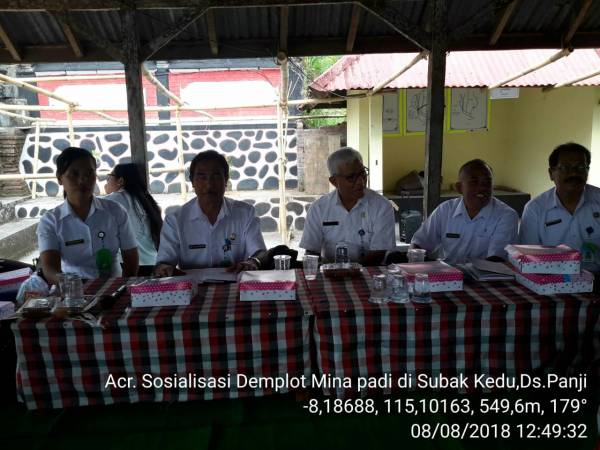 Bertempat di Balai Subak Kedu, Desa Panji Kecamatan Sukasada, Acara Sosialisasi di pimpin oleh Kasi Produksi Tanaman Pangan, (Madu Danu, SP) kemudian dilanjutkan dengan penjelasan teknis oleh Kepala Bidang Tanaman Pangan I Gede Suadnya, SP. MMA) selanjutnya sedikit penjelasan dari Kepala Bidang Perikanan dan Kasi Budidaya.