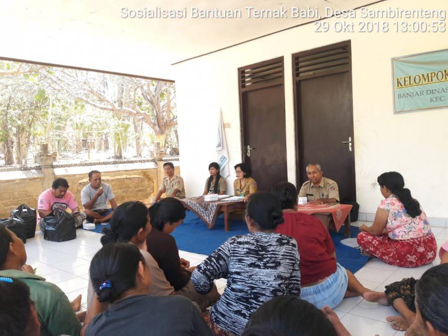Menindak lanjuti hasil Musrenbang Desa Madenan dan Desa Sambirenteng Tahun 2018 bahwa kedua KWT tersebut mengajukan Bantuan Bibit Ternak Babi maka pada hari Senin, 29 Oktober 2018 dilaksanakannya kegiatan Sosialisasi hibah ternak babi APBD kabupaten 2018 di 2 Kelompok, yaitu kelompok Wanita Tani Embah Merta Sari Desa Madenan dan Kelompok Wanita Tani Sila Boga Desa sambirenteng Kecamatan Tejakula.