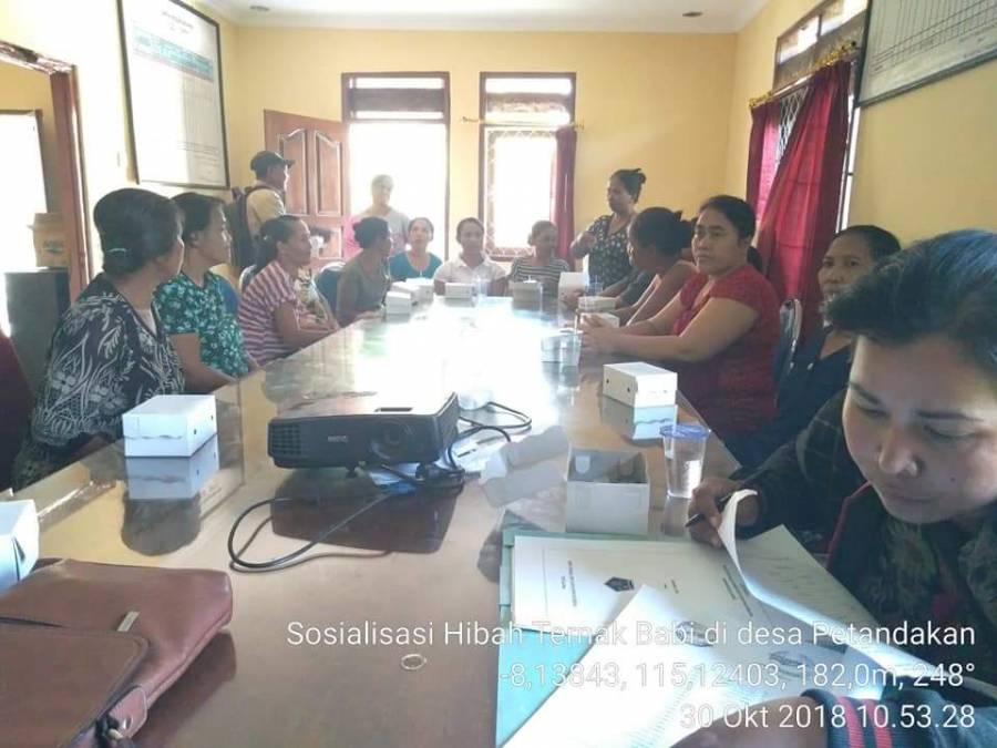 Dalam rangka memprlancar kegiatan Hibah Ternak Babi di Kabupaten Buleleng ke Masyarakat atau ke Kelompok Wanita Tani / Gapoktan di Kabupaten Buleleng, maka Tim Sosialisasi Kabupaten Buleleng yang di wakili oleh drh. Made Sudarsana, MMA selaku Kasi Perbibitan dan Produksi Peternakan Dinas Pertanian Kabupaten Buleleng beserta staff mengadakan kegiatan Sosialisasi Hibah Tarnak Babi APBD Kabupaten Buleleng Th 2018 yang berlokasi di Kelompok Wanita Tani (KWT) Cempaka Desa Petandakan, Kecamatan Buleleng. Kegiatan ini mulai berlangsung pada Jam 10.00 Wita
