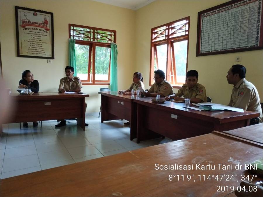 Hari ini tanggal 8 April 2019 telah dilaksanakan acara sosialisasi kartu tani oleh pihak bank BNI dengan dihadiri oleh koordinator BPP Gerokgak beserta seluruh PP di kecamatan Gerokgak dalam meningkatkan kinerja pertanian untuk penyaluran pupuk bersubsidi dengan agenda kegiatan :