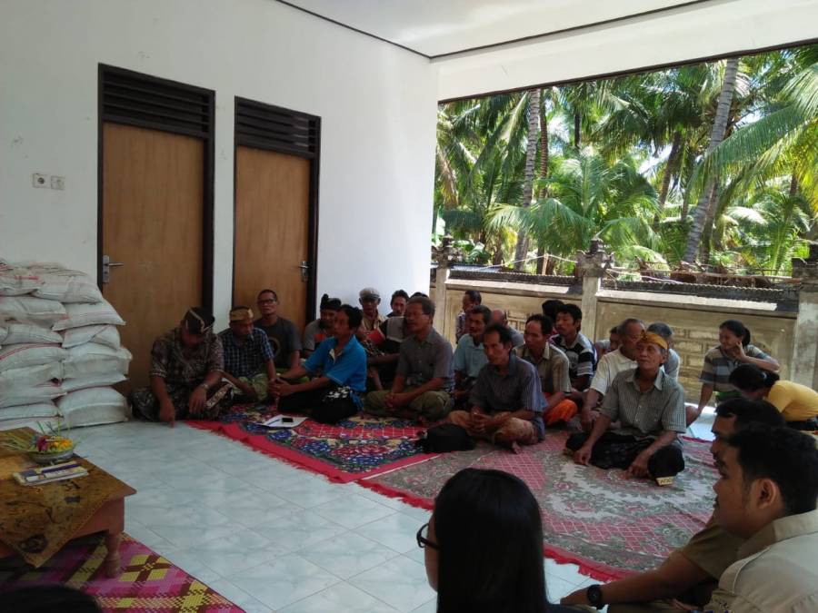 Pada hari ini Rabu 25 September 2018 telah dilaksanakan sosialisasi kegiatan peremajaan kelapa dalam kegiatan APBN Tahun 2018 di Kabupaten Buleleng seluas 280 Ha. Untuk Kecamatan Tejakula dilaksanakan di 2 lokasi yaitu Balai Kelompok Tirta Lebah yang dihadiri oleh anggota Kelompok Tani Tirta Lebah dan Kelompok Lebah Madu sebanyak 40 orang, sedangkan lokasi pertemuan lainnya di kelompok Selonding Sari dihadiri Kelompok Selonding sari dan Bhuana Tirta Sari sebanyak 30 orang.