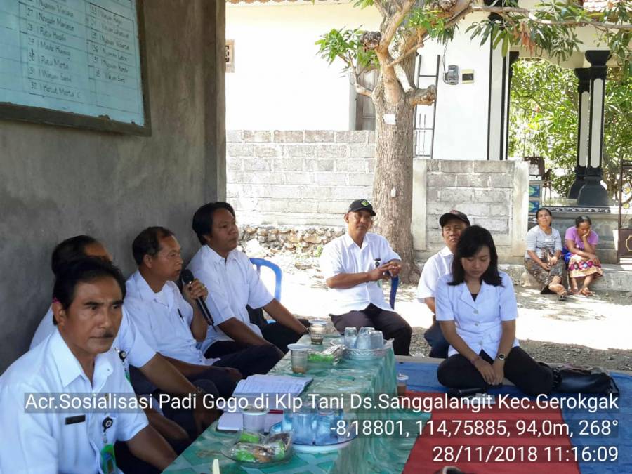 Sosialisasi yang dipimpin langsung oleh Bapak I Gede Suadnyana, SP. MMA. selaku Kepala Bidang Tanaman Pangan yang mewakili Kepala Dinas Pertanian Kabupaten Buleleng memberikan pengarahan kepada para petani yang hadir dalam sosialisasi tersebut agar benar-benar melaksanakan bantuan padi gogo ini sesuai dengan peruntukannya untuk dapat meningkatkan provitas dan produksi padi.