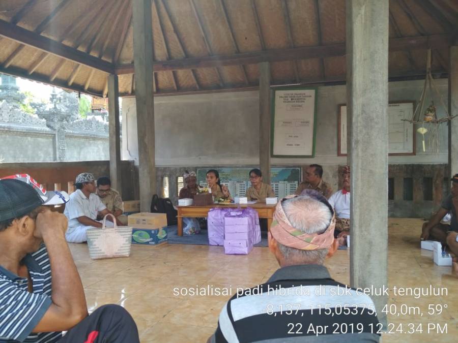 Plt.Kasi Produksi TP. POPT, PPL, Perbekel menyelenggarakan Pertemuan dalam rangka SOsialisasi Padi Hibrida dan dibuka oleh PPL Wilayah Binaan Tukadmungga, Ida Ayu Putu Mahaindri. Pada kesempatan tersebut disampaikan bahwa kegiatan demfarm padi hibrida belum pernah dilaksanakan di Subak Celuk Tengulun, maka dari itu Subak siap melaksanakan kegiatan dan akan didampingi selama kegiatan berlangsung.