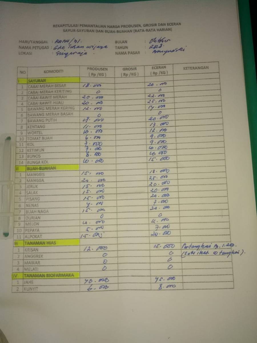 Tujuan dilakukannya survei harga pasar pagi ini adalah tidak lain untuk mengetahui perkembangan harga Komoditas Peranian di tingkat pasar.