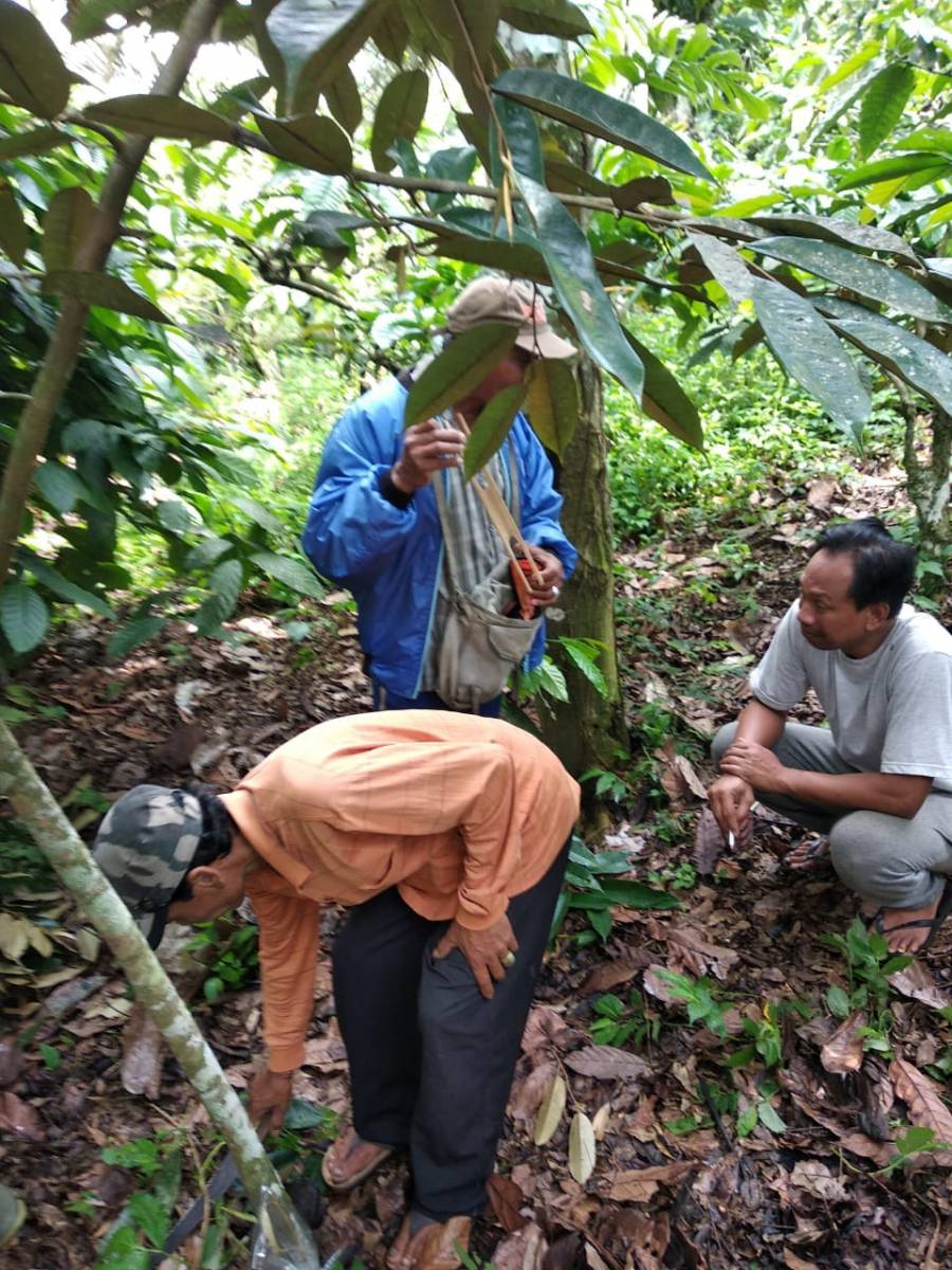 10 Desember 2018, Berlangsung Kegiatan "Teknik Sambung Samping pada tanaman Kakao/coklat di Kelompok Tani Karya Amerta Desa Bongancina. Tujuan dari sambung cabang samping tanaman kakao ini, lebih menekankan percepatan produksi, dan juga memudahkan dalam pemanenan karena, tinggi tanaman mkasimal bisa dibatasi hingga -+ 90cm saja seperti pada tanaman Kopi Robusta.