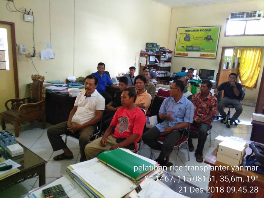 Yanmar membantu program pemerintah dengan cara memberikan pelatihan kepada para Kelompok Subak penerima bantuan alat dan mesin pertanian Rice Transplenter di Kabupaten Buleleng. Kegiatan ini dilaksanakan pada hari jum'at 21 Desember 2018 yang bertempat di ruang Bidang Prasarana dan Sarana Pertanian Dinas Pertanian Kabupaten Buleleng.