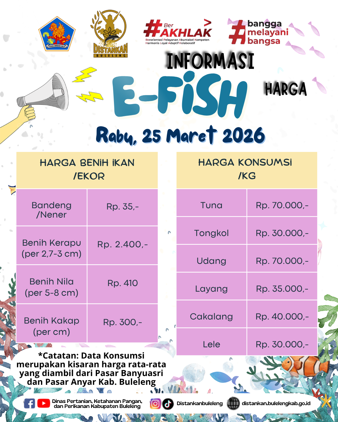 Informasi Harga Ikan Hari Rabu tanggal 25 Maret 2026