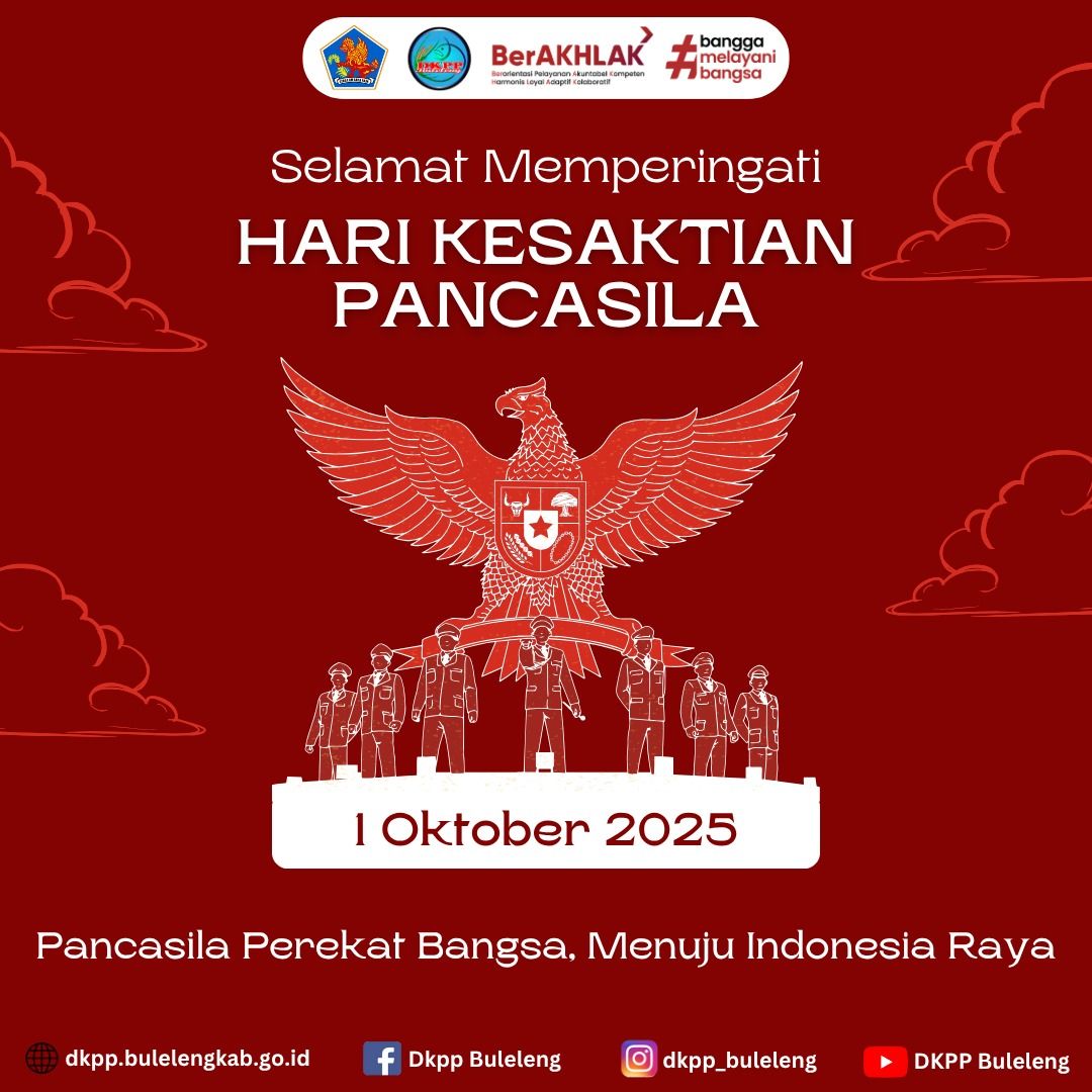 Keluarga Besar Dinas Ketahanan Pangan dan Perikanan (DKPP) Kabupaten Buleleng mengucapkan Selamat Memperingati Hari Kesaktian Pancasila 1 Oktober 2025 "Pancasila Perekat Bangsa, Menuju Indonesia Raya"
