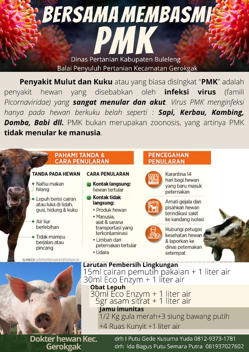 Penyakit Mulut dan Kuku (PMK) adalah penyakit menular yang menyerang hewan berkuku belah seperti sapi, kerbau, kambing, domba, dan babi. Penyakit ini disebabkan oleh virus Foot and Mouth Disease Virus (FMDV) dan sangat menular, menyebabkan kerugian ekonomi yang besar di sektor peternakan.