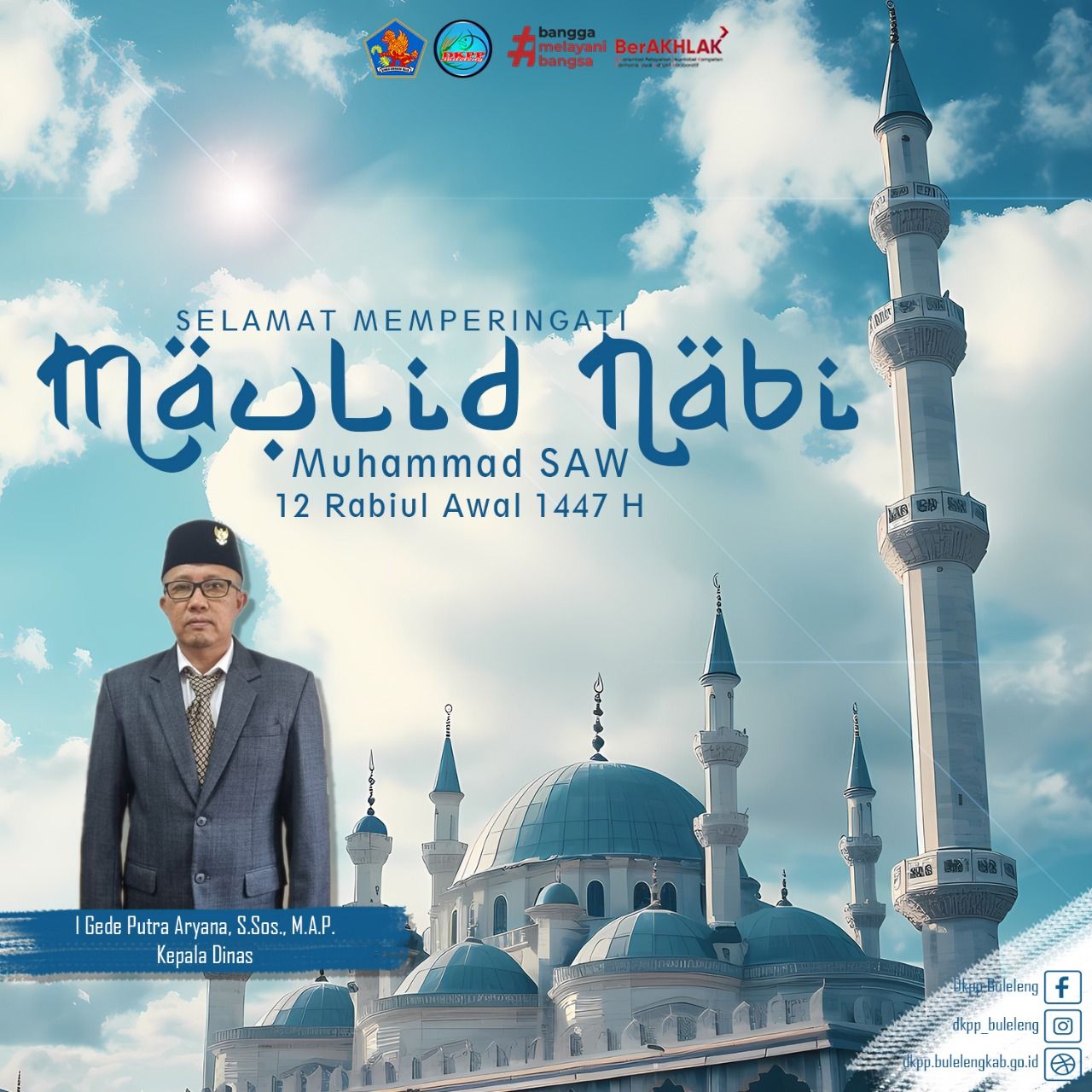 Keluarga Besar Dinas Ketahanan Pangan dan Perikanan (DKPP) Kabupaten Buleleng mengucapkan Selamat Memperingati MAULID NABI MUHAMMAD SAW 12 Rabiul Awal 1447 Hijriah Tahun 2025.