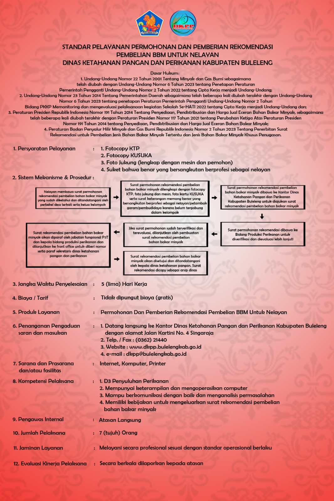 STANDAR PELAYANAN PERMOHONAN DAN PEMBERIAN REKOMENDASI PEMBERIAN BBM UNTUK NELAYAN
