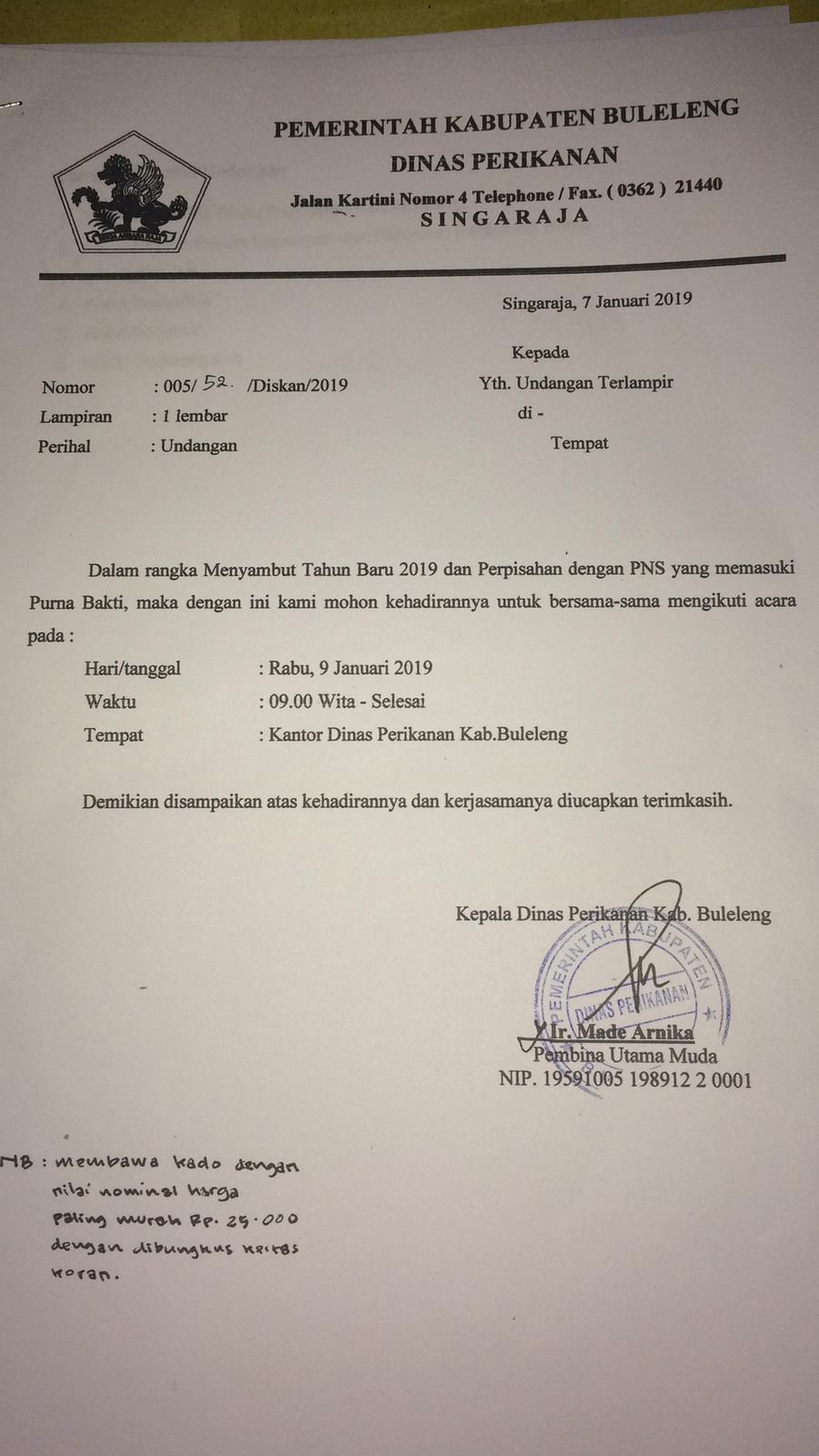 Undangan Dalam Rangka Menyambut Tahun Baru 2019 dan Perpisahan PNS Memasuki Masa Purna Bakti